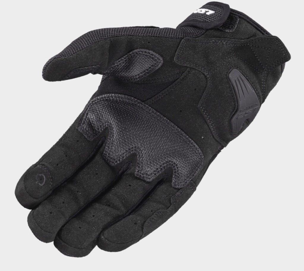 Lightweight leather and mesh gloves with superior ventilation, perfect for warm weather. Reinforced carbon knuckle protection for enhanced safety. Designed for maximum comfort with a secure hook-and-loop closure and touchscreen compatibility.